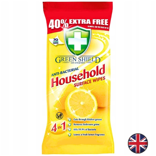 Green Shield Household Uniwersalne Chusteczki Nawilżane Antybakteryjne 70 szt. (Wielka Brytania)
