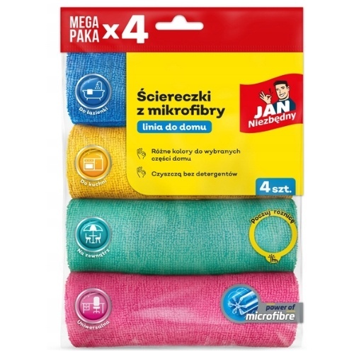 Zestaw ściereczek z mikrofibry Jan Niezbędny (4 szt.) to niezastąpiony pomocnik w każdym domu. Idealne do czyszczenia kuchni, łazienki, szyb, mebli i urządzeń, zapewniają lśniącą czystość bez użycia detergentów. Dzięki wysokiej jakości włóknom mikrofibry skutecznie zbierają kurz, tłuszcz i zabrudzenia, pozostawiając powierzchnie idealnie czyste i bez smug.